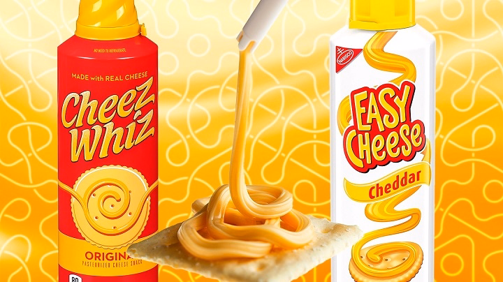 - Add the brand name in large, clear text, such as “Spray Cheese.”